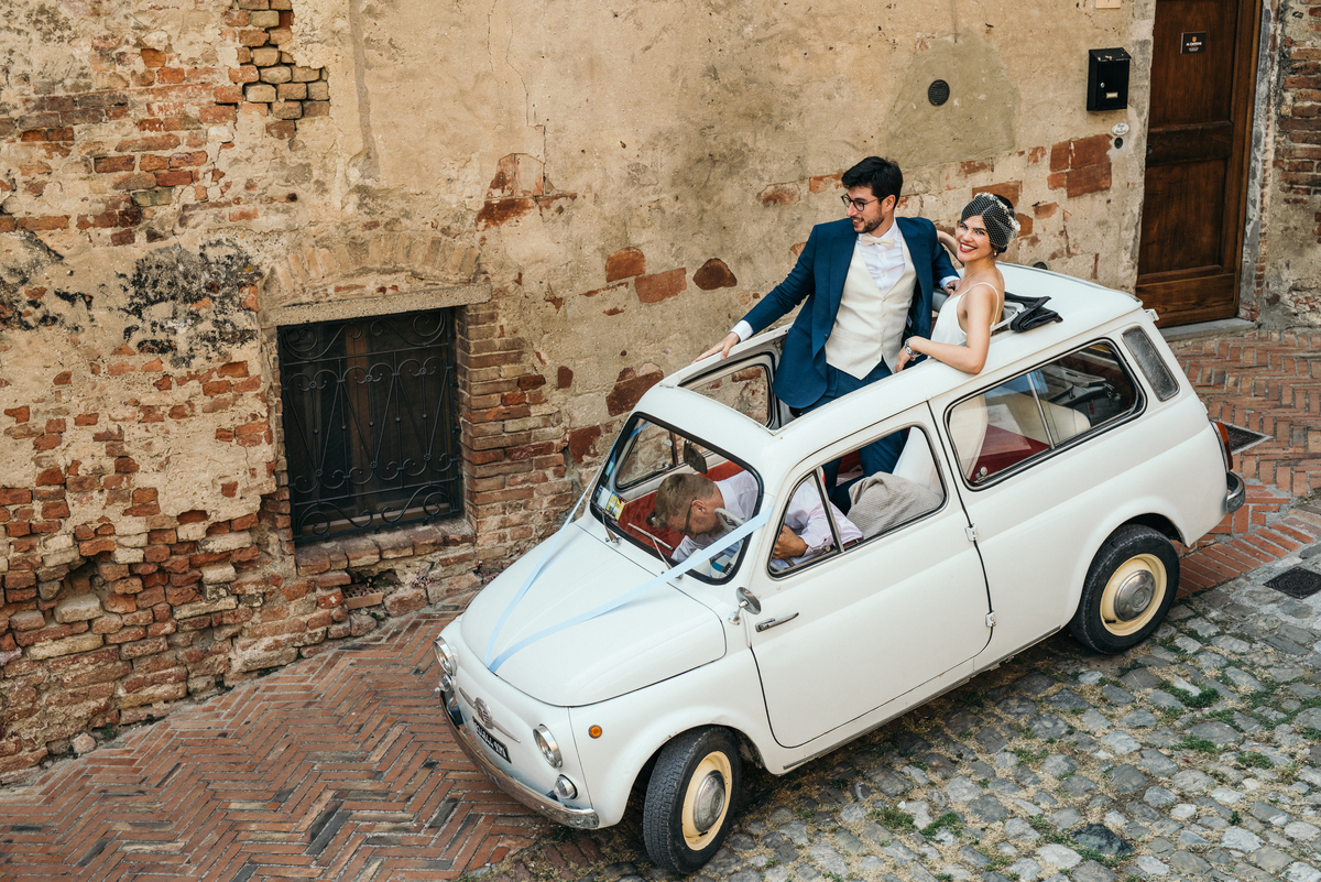 With guests from all over the world, Paris and New York were the best represented cities. Civil wedding in Certaldo Alto and symbolic ceremony in Guardastelle.