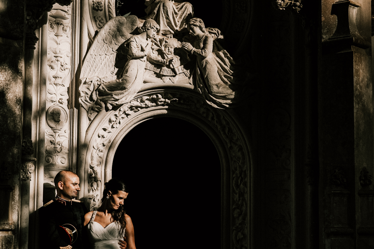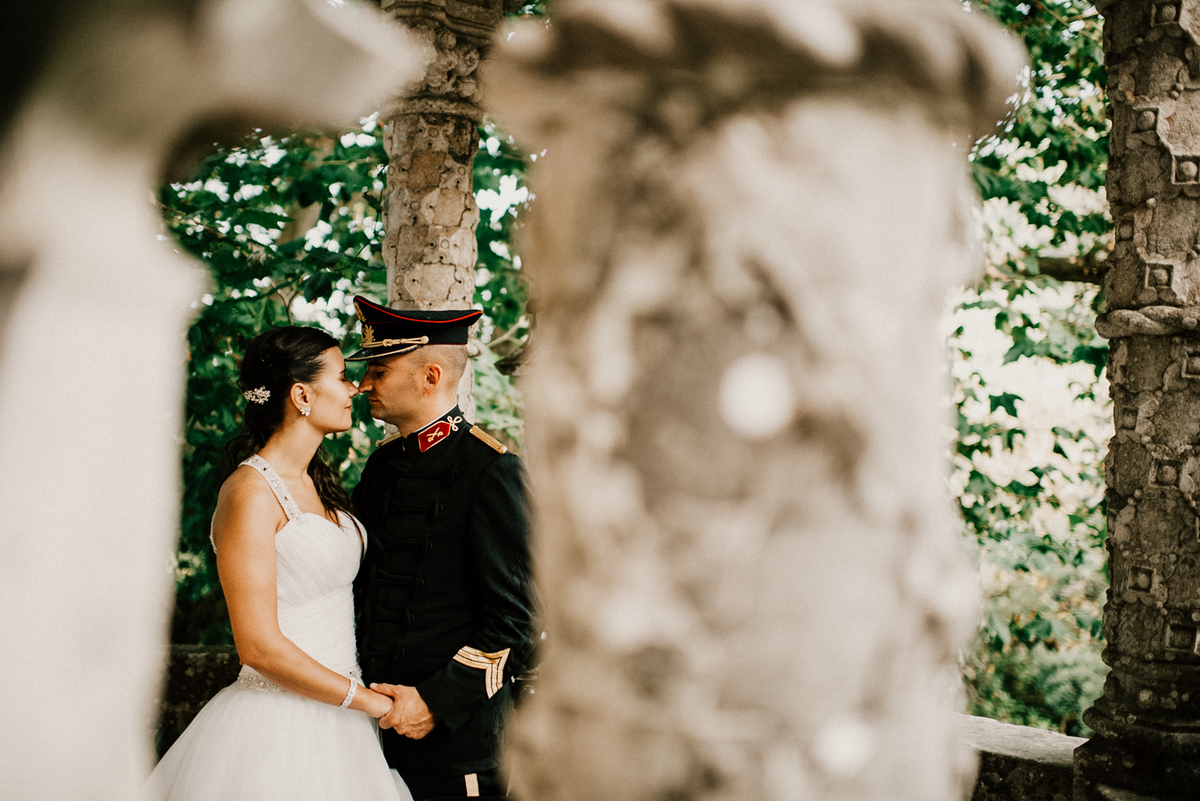 Este tipo de sessão fotográfica de noivos em Sintra combina património, natureza e identidade pessoal, especialmente quando elementos como a farda de gala acrescentam dimensão e narrativa.