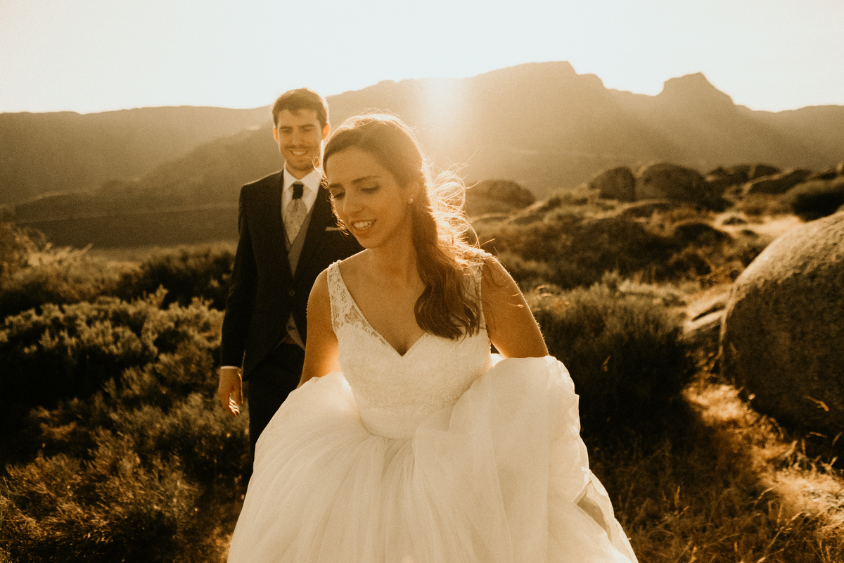A vista para o maciço central da Serra da Estrela trouxe imponência às imagens, enquanto o calor da luz trouxe intimidade. O contraste entre a escala da paisagem e a proximidade do casal resultou numa narrativa visual forte e emocional.