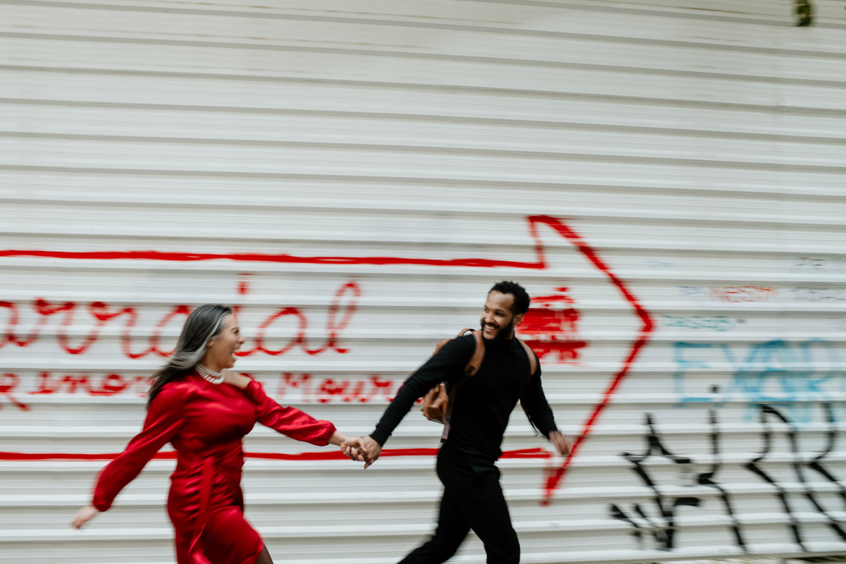 A sessão de namoro da Aline e do Alberto foi tudo menos parada — foi uma verdadeira corrida (literal) pelo coração de Lisboa. Começámos na Mouraria, entre ruas cheias de vida e recantos inesperados, onde o ambiente descontraído ajudou a quebrar o gelo e deu espaço para a espontaneidade acontecer.